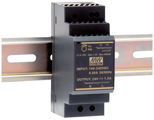 für externe Montage außerhalb des Unterflurkonvektors, 85 - 264 V AC, 24 V DC, 36 W, auf Hutschiene, Schutzklasse II