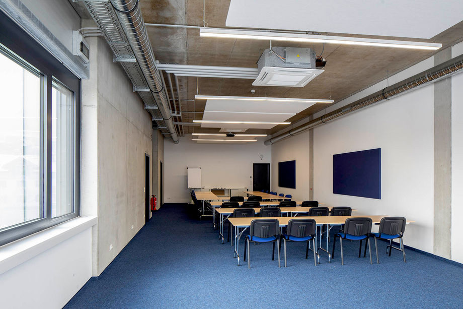 Zu einer zukunftsweisenden Fertigung gehören natürlich auch zeitgemäße Büro- und Meetingbereiche. In diesen Räumen sorgen Kampmanns KaCool D AF für das entsprechende Wohlfühlklima. Die Deckenkassetten zum Heizen oder Kühlen bringen die Luft dank der seitlichen Luftauslässe besonders behaglich in die Räume ein. Das dezente Design verschmilzt mit der abgehängten Zwischendecke, macht aber auch unverkleidet eine gute Figur.